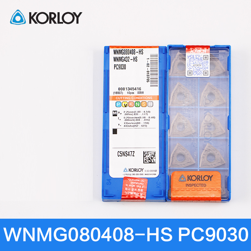 Code : WNMG080408-HS PC9030, Features: 1.For stainless steel processing 2.Excellent wear resistance and breakage resistance 3.Professional inspection and high precision 4.High precison, easy replacement, general use Parameters: Product name Korloy carbide cutting tips Brand Korloy Model number WNMG080408-HS PC9030 Grade PC9030 Coating PVD CVD Application Stainless steel processing Origin South Korea Usage turning tool Package 10pcs in a plastic box Our Main Items: CNC Cutting Tools: Carbide Insert; Tool Holder; Boring Bar; End Mills; Reamers; Collect Chuck; Drill Bit; Mill...
